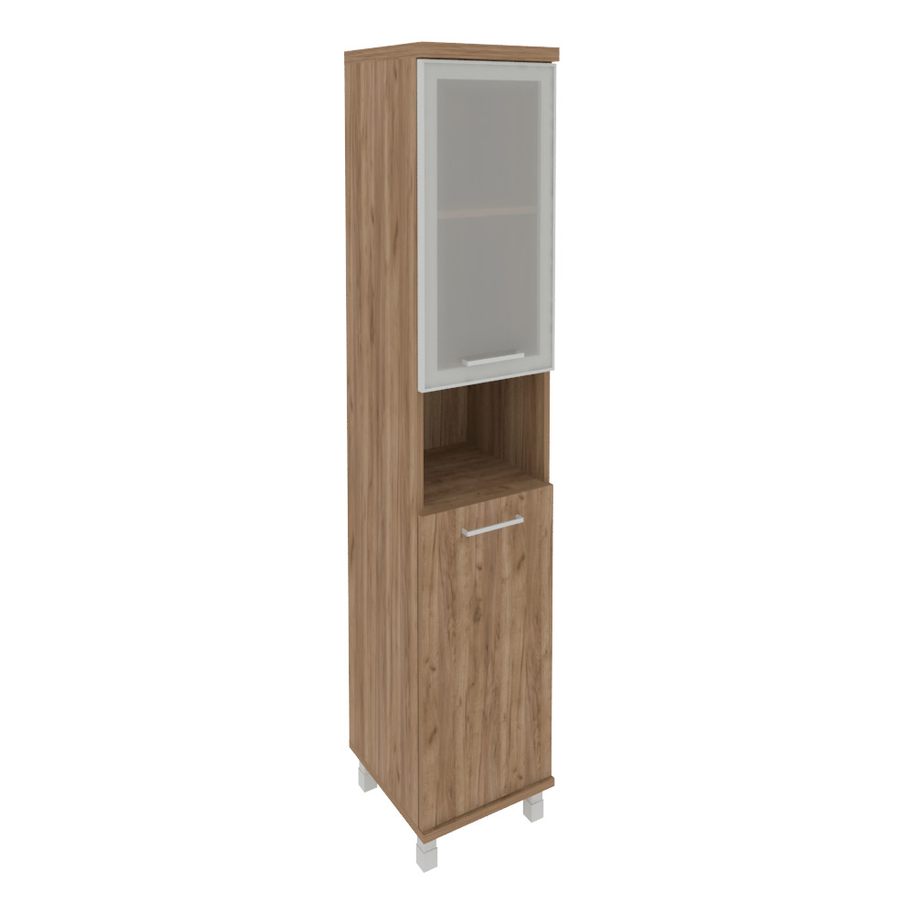 KSU-1.7R(L) Шкаф пенал высокий левый двери низ — ЛДСП, верх — стекло в раме First 400х430х2060