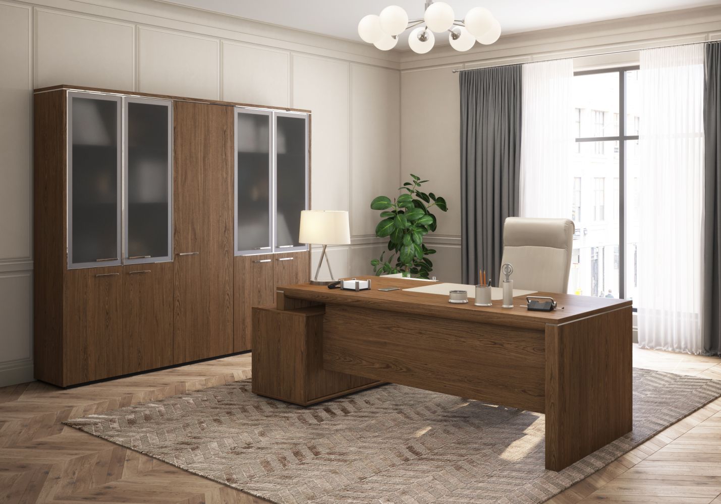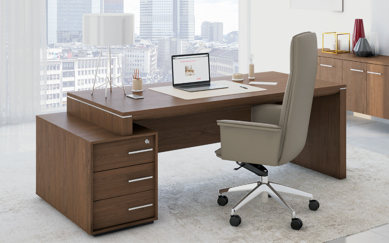ВЛ 146 ДТ Стол руководителя левый на опорной тумбе малой Velar 2020x940x760