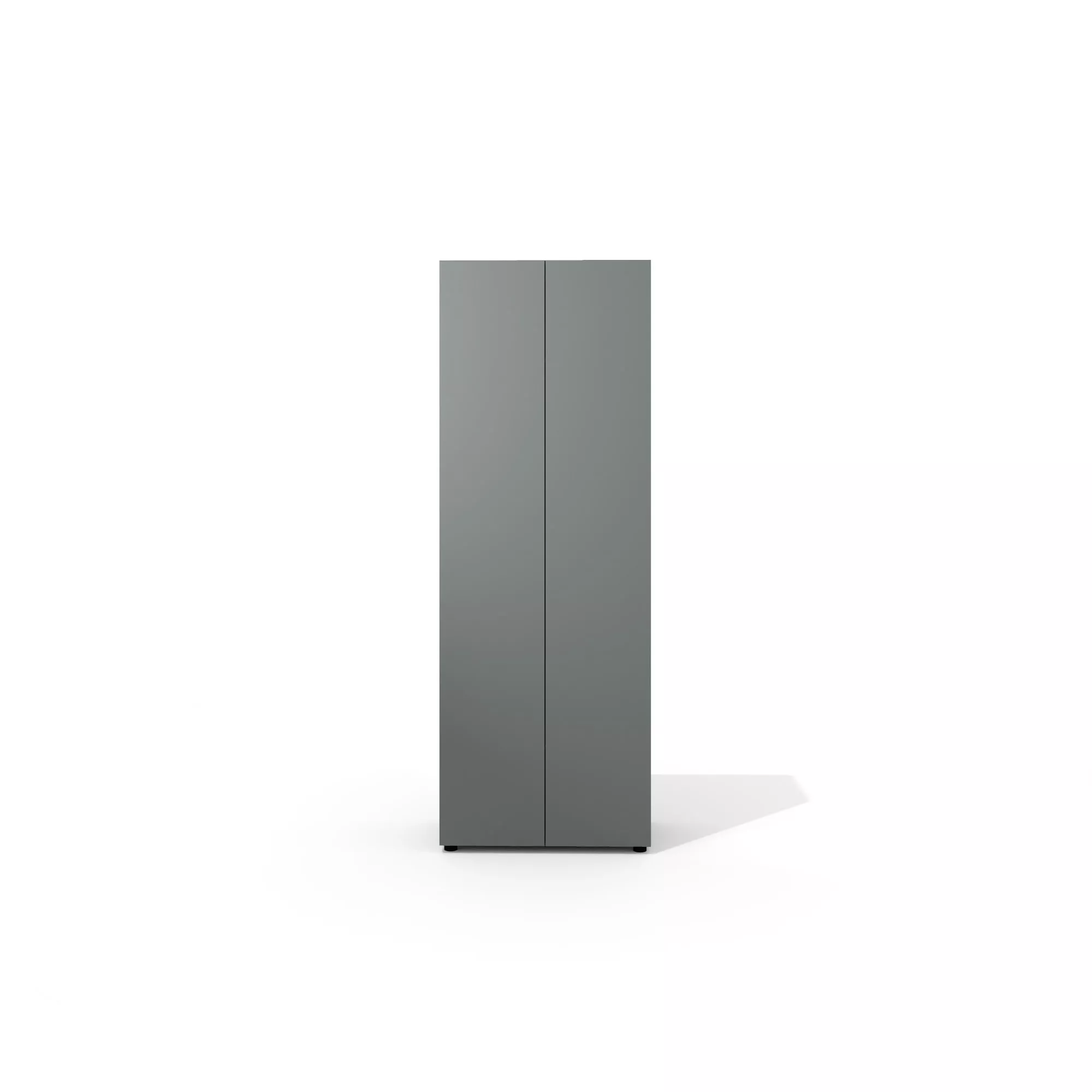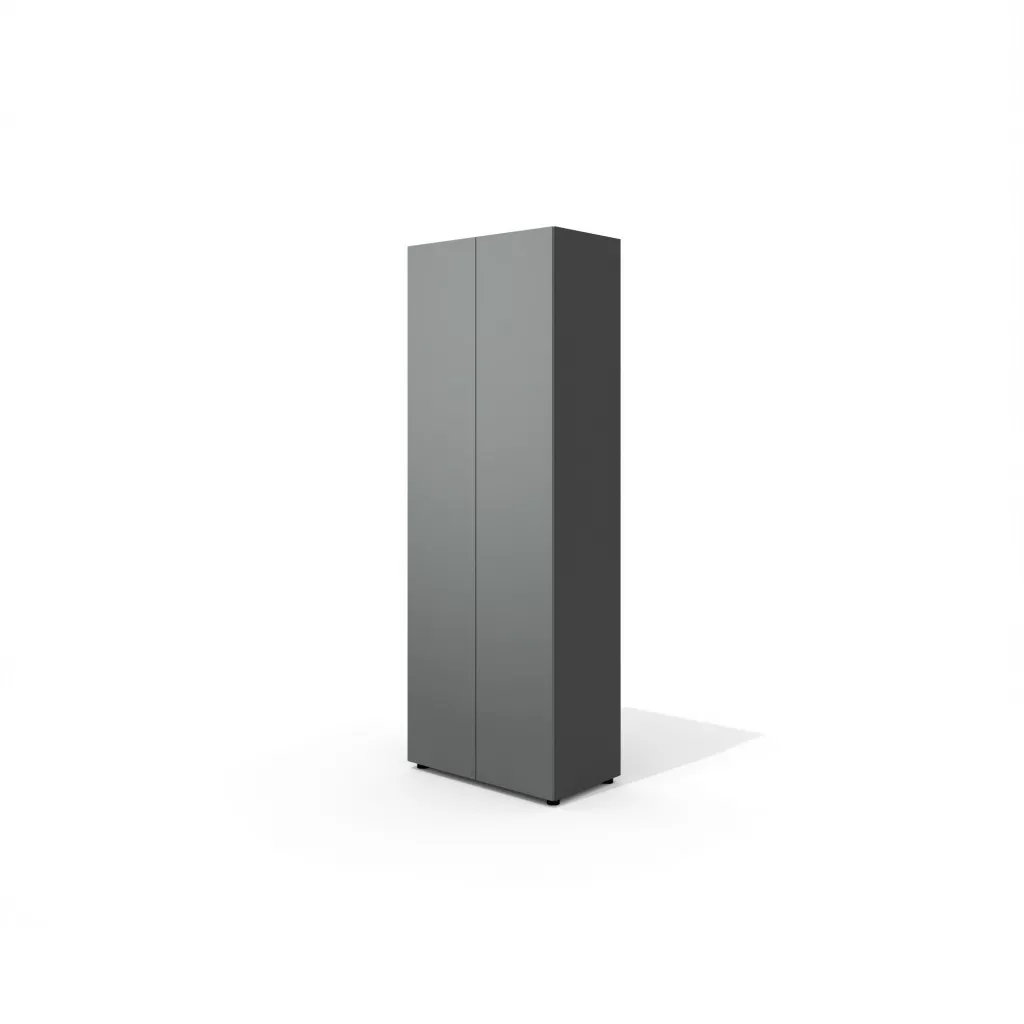 Гардероб с двумя распашными фасадами, оборудованными механизмом «push-to-open» и полкой для головных уборов. В комплекте выдвижная штанга. На фасадах имеются декоративные углубления, которые образуют единую линию с углублениями между верхними и нижними дверцами других шкафов серии и позволяют выстроить гармоничный ансамбль.