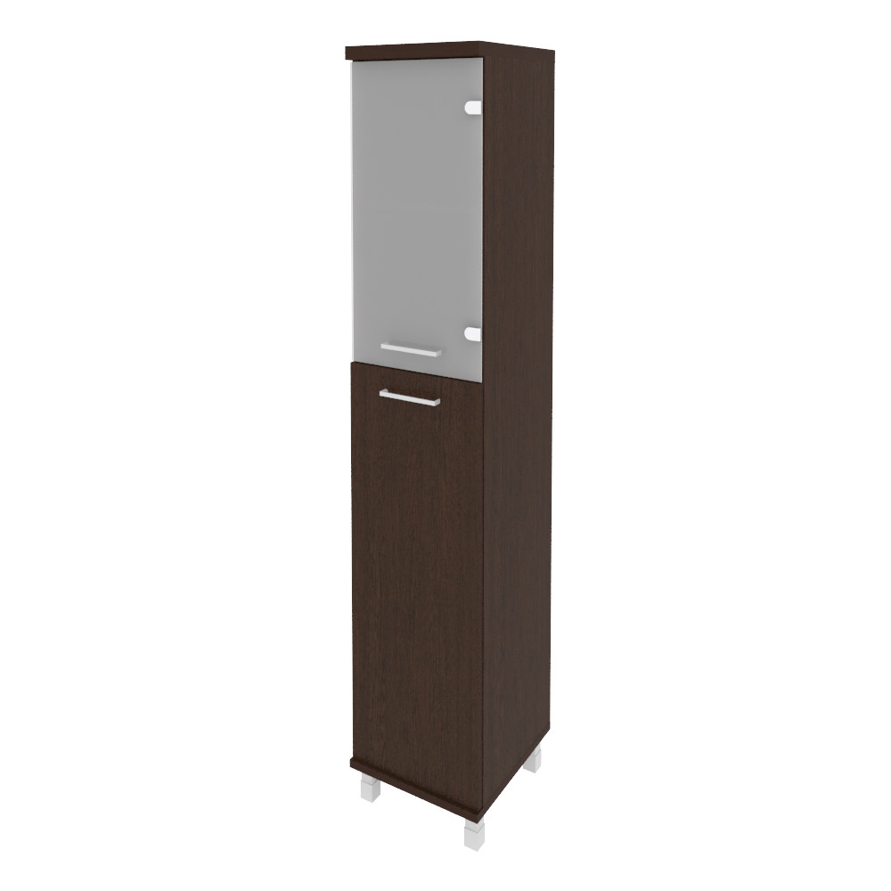 KSU-1.7(R) Шкаф пенал высокий узкий правый (1 средняя дверь ЛДСП, 1 низкая дверь стекло) First 400х430х2060