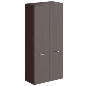 Шкаф комбинированный с комплектом боковых понелей и топом. Корпус шкафа выполнен из ЛДСП толщиной 18мм, задняя стенка из ХДФ т.4мм разрезная в паз. Двери глухие малые из ЛДСП т.18мм с кромкой ПВХ т.2мм по периметру. Ручки металлические с межцентровым расстоянием 160мм, цвет — серебро. Стеклянные двери — бронза тонированная, толщиной 4мм., полировка по периметру кромки. Боковые панели из МДФ т.19мм. с фрезеровкой по вертикали в пленке ПВХ. Топ из МДФ т.19мм. с фрезеровкой по трем сторонам в пленке ПВХ.