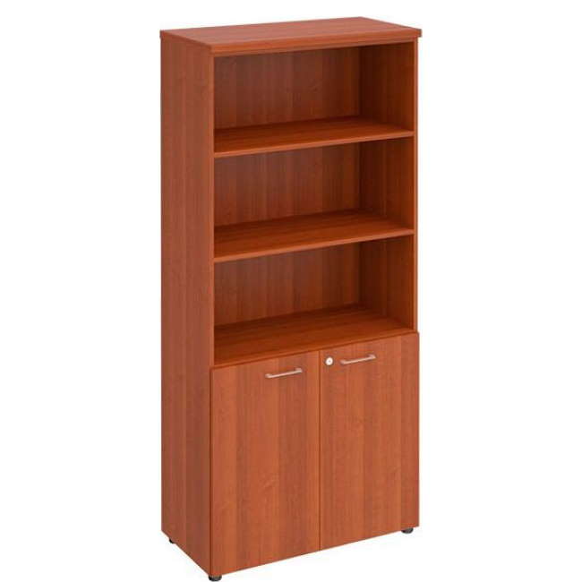 Шкаф имеет регулировочные опоры, 1 фиксированную по высоте полку и 3 регулируемые по высоте полки