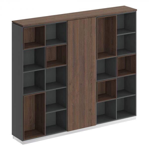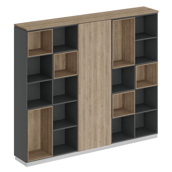 Каркас каждого стеллажа состоит из 2-х секций для документов с 4-мя фиксированными по высоте полками в каждой секции