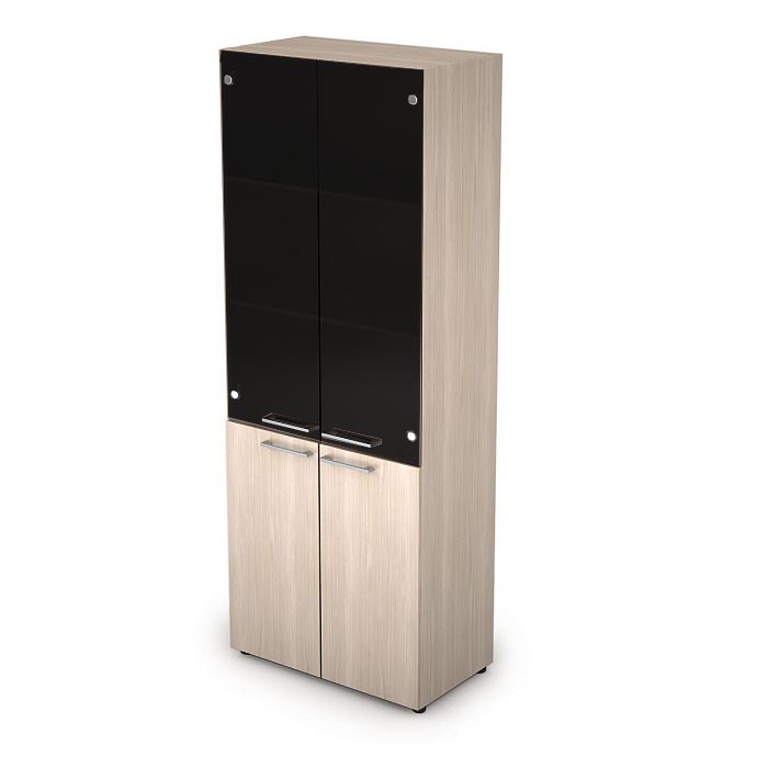 Шкаф высокий с стеклом черный глянец 4Ш.005.4