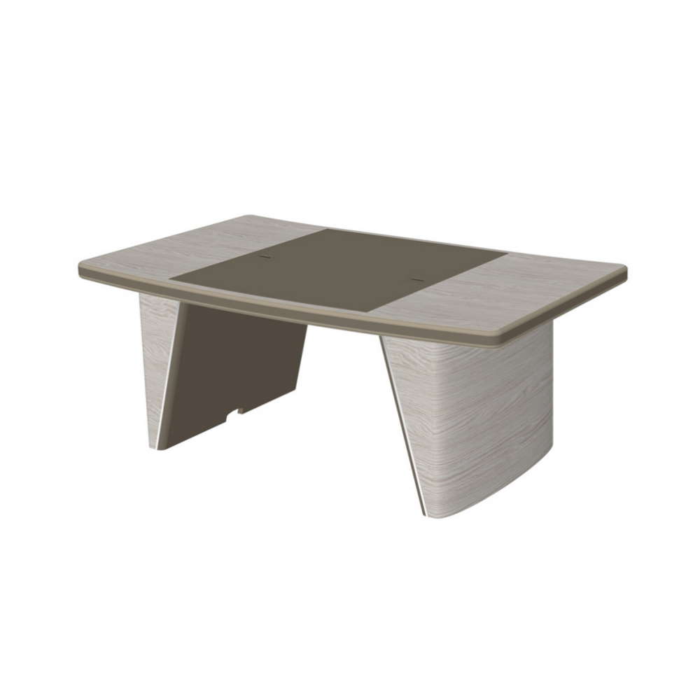 Стол руководителя New.Tone NT-190 выполнен из шпонированного МДФ. Торцы столешницы с эмалевым покрытием декорированы вставками из экокожи. Опоры со съемными панелями, обтянутыми экокожей, декорированы хромированным молдингом. Может комплектоваться подвесным траверсом NT-76.