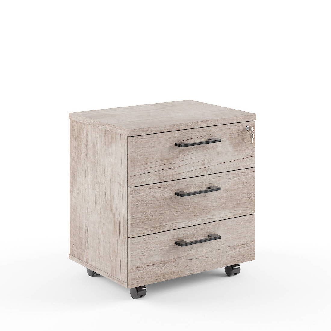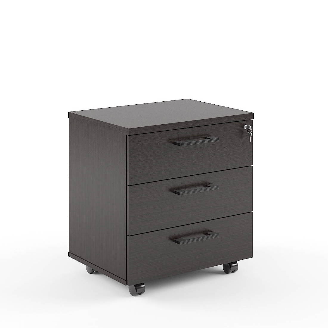 Тумба мобильная комплектуется центральным замком на 3 ящика и шариковыми напрвляющими полного выдвижения, колесными опорами со стопором и без.