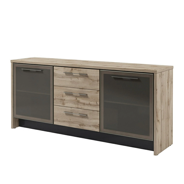 Тумба с 2 дверьми и 3 ящиками.Двери стеклянные в алюминиевом профиле.
