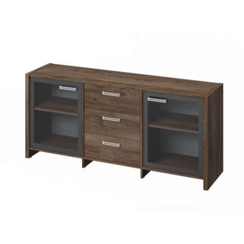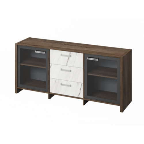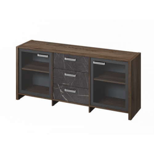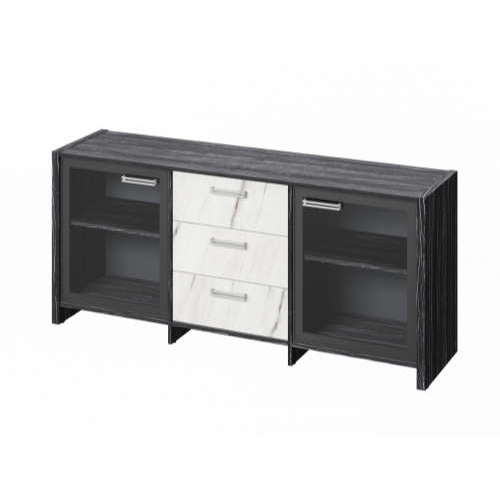 Тумба с 2 дверями в алюминиевом профиле и 3 ящиками.